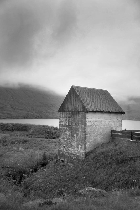 Home Upon the Inlet-Fine Art Photography-Old, Desolate Home in the Faroe Islands-Black and White