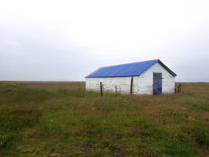 It seems there are a lot of 'white sky days' in Iceland. Yet with a roof like this? I feel this beautiful barn adds a magical feel to the land. A grey day is never just a grey day when color surrounds, leaving bright and happy feelings upon the vast land. Here I wonder the story of this little barn. I wonder what she holds still inside... perhaps many antiques...and I wonder who it was who decided to add this rich blue color to her roof and door making her stand out...unique from the rest.