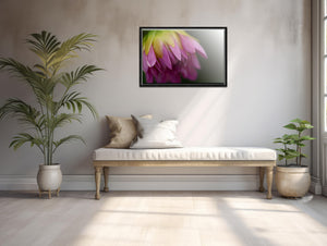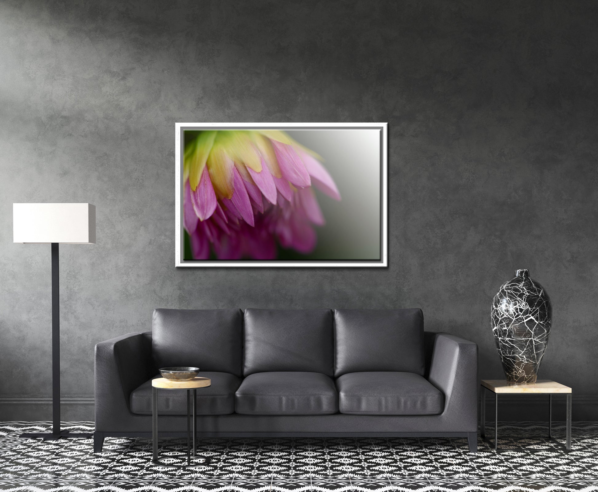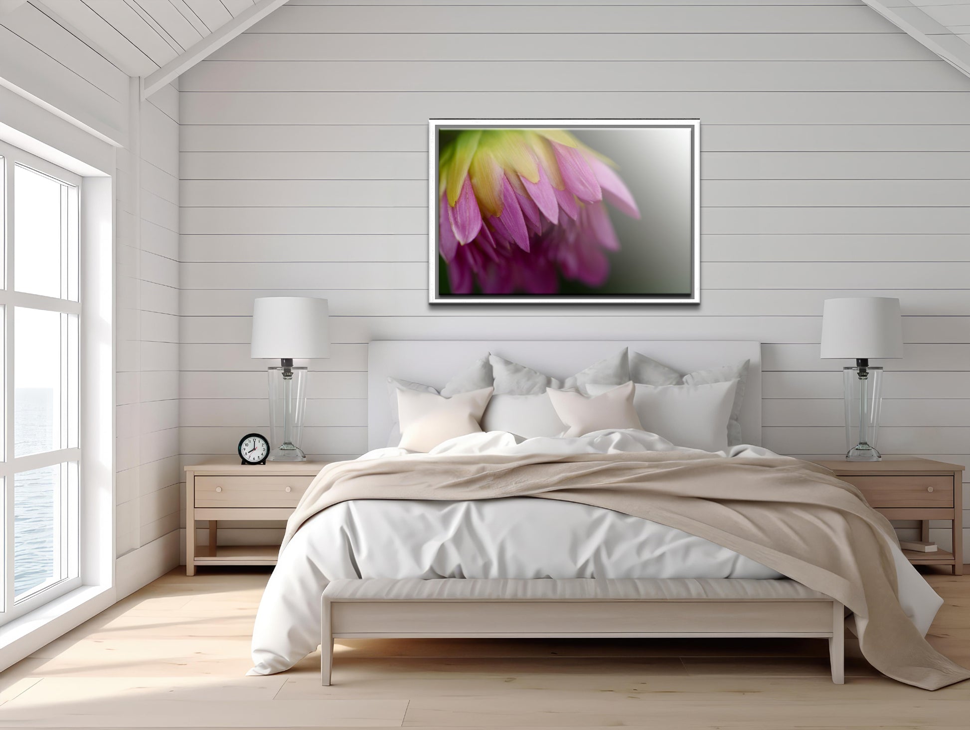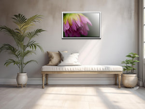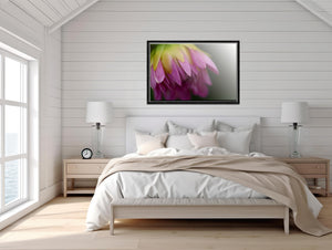Bold, bright and beautiful, this Dahlia stands out with her thin pink petals and yellowish stem. The garden in the summer could not be more colorful. Have a room you need to brighten up in your home? This might be the perfect image.