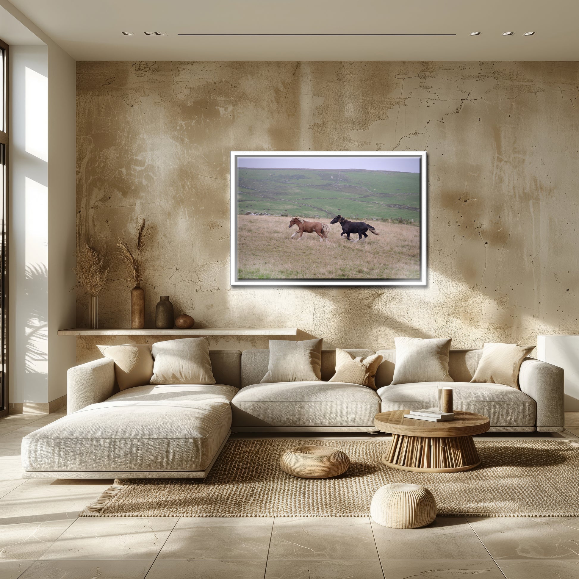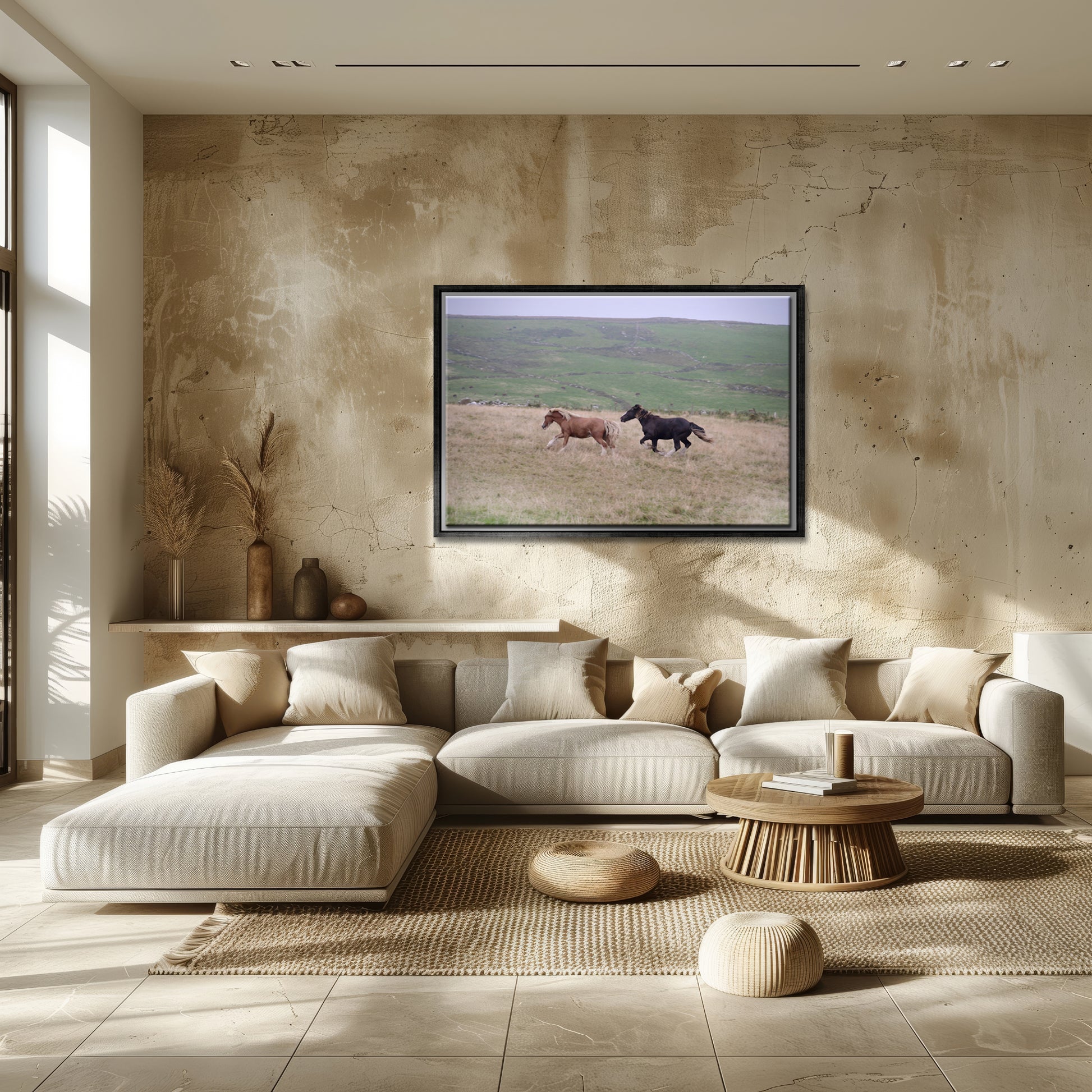 Playful, their manes flowing against the Irish wind, hooves thundering against the fading grass, drumming the earth with joyful thunder. I watched as these two raced against the wind, raced each other, a bond that seemed could never be broken. Pure, unspoken and free, this was a moment I'll never forget. This image is a reminder to live with spirit, move with purpose and cherish the unspoken connections we share. This is not just a picture of two horses playing, it's an image that presents the beauty of being fully alive.