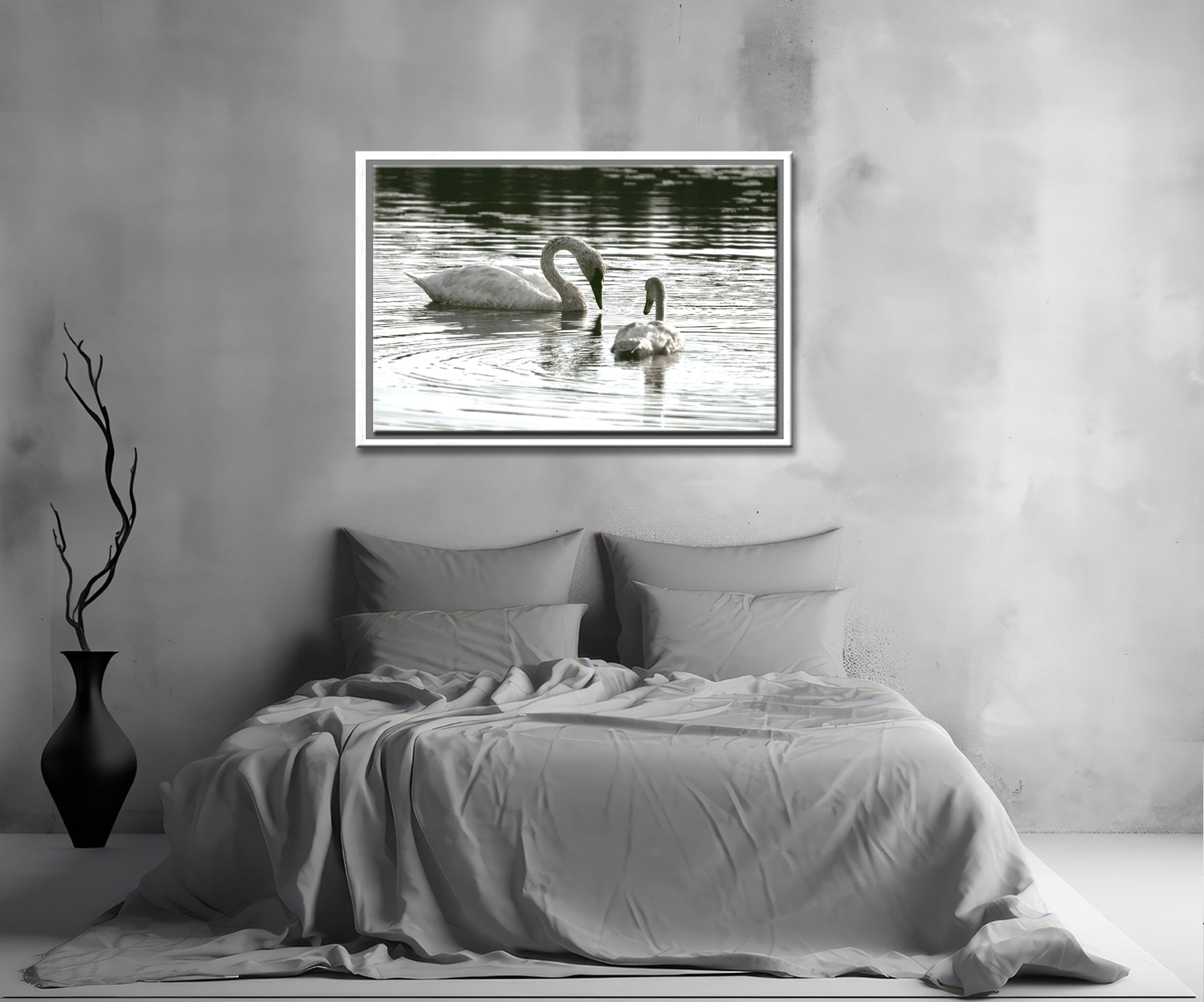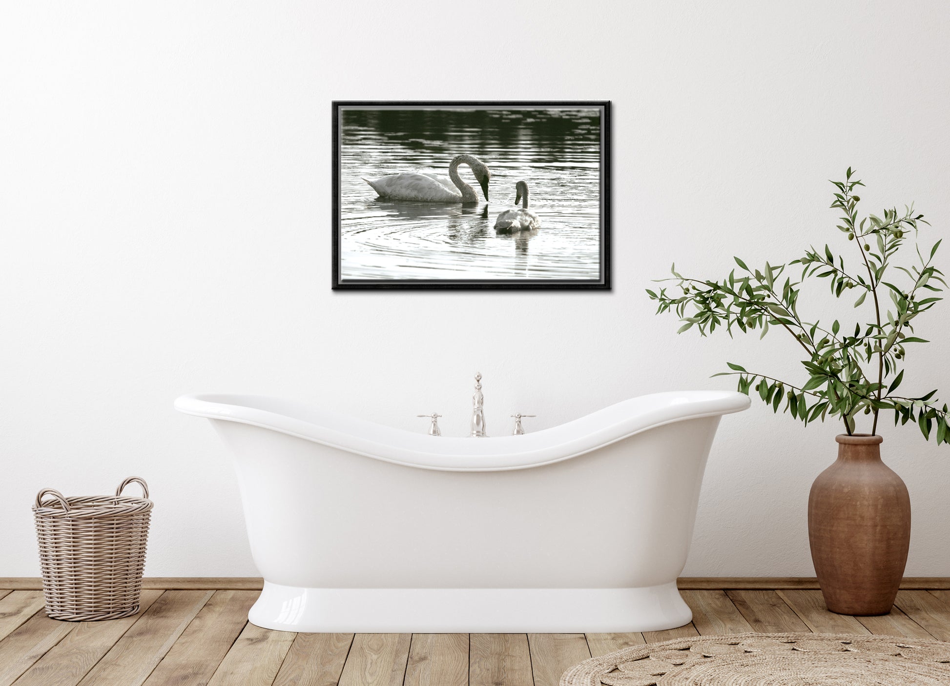 Mom and Baby in the Bay-Fine Art Photography-Beautiful Mom and Baby Swans
