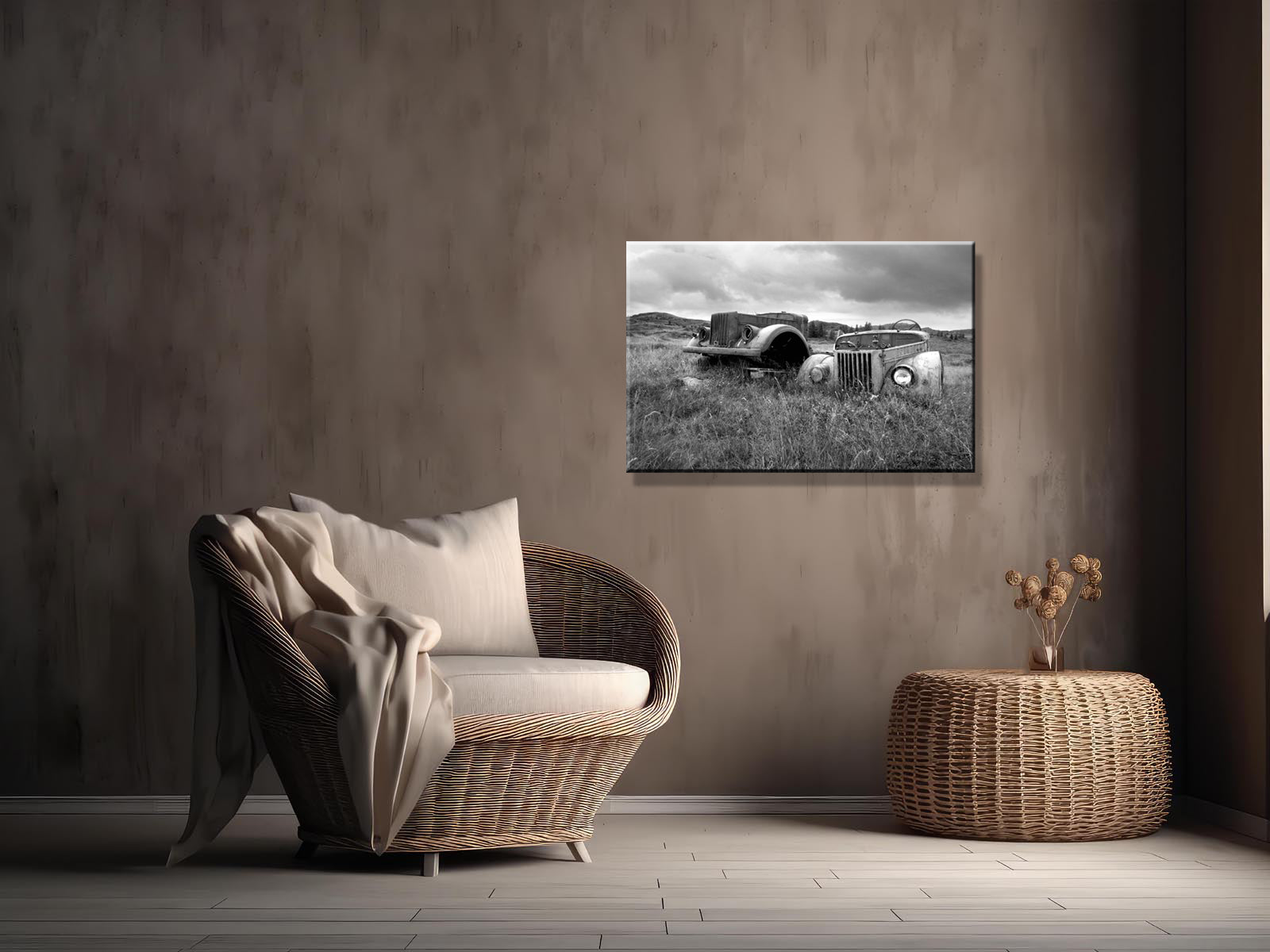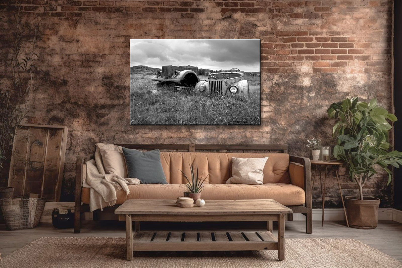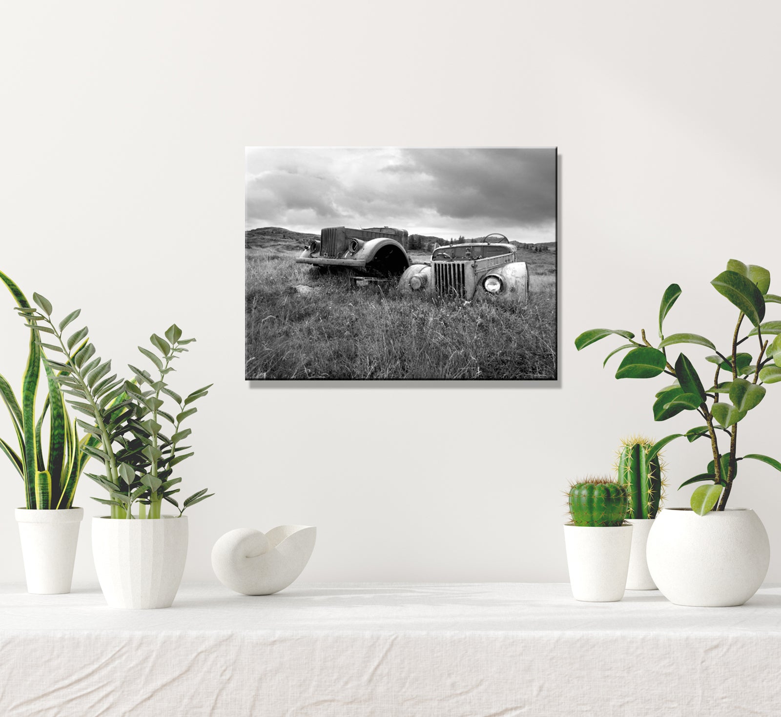 Old Time Cars-Fine Art Photography-Printed on Metal-Old-time Cars-Iceland-Black and White