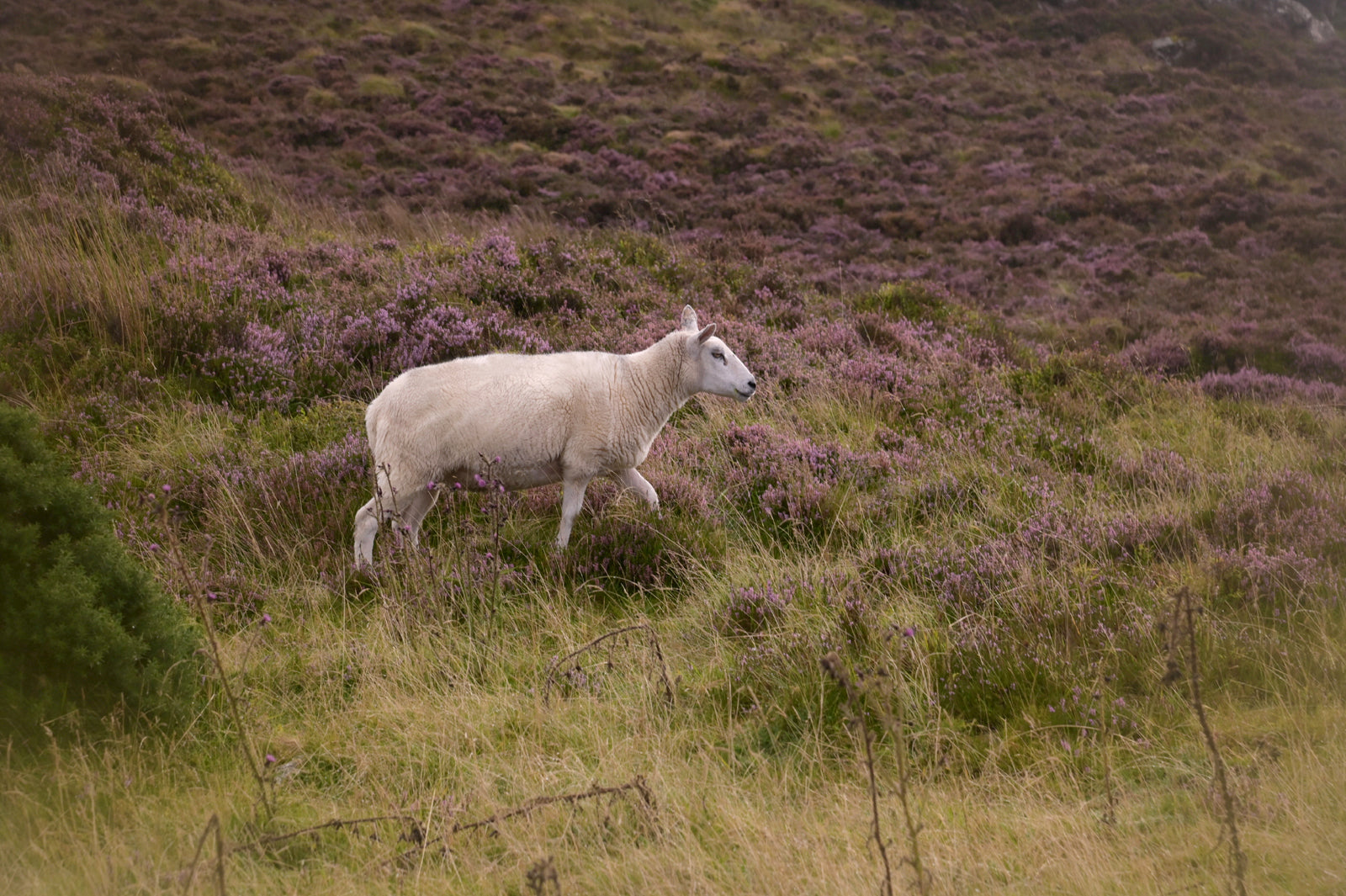 Sheep are one of my favorite little animals. After being surrounded by them so often on my travels, I've grown to appreciate them in so many ways. There is an elegant peacefulness in their slow, unhurried movement, a rhythm only found in places untouched by haste. This freshly sheered sheep wandered through the silent fields of Heather, looking for her next spot to graze, content in her quiet grace of just being.